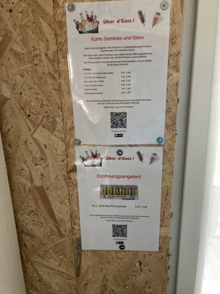 Immer kühle Getränke Der Kühlschrank ist eingerichtet Liebe Pächterinnen und Pächter wie an den Infoabenden kommuniziert, gibt es nun einen Kühlschrank im Gartenstübli, an welchem Getränke bezogen werden können, wenn das Gartenstübli geschlossen ist. Kasse und Twint-Anweisung sind neben dem Kühlschrank angebracht. Sollten Getränke oder Eis nicht mehr verfügbar sein, kann dies über Peter nachbestellt […]