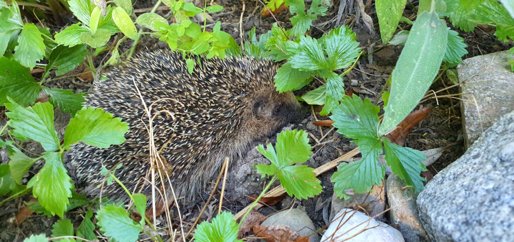 Der Igel verspeist mit Vorliebe Schnecken, aber auch Spinnen und andere Insekten. Zusätzlich räumt der Igel auch gerne den Garten auf, indem er an liegengebliebenem Fallobst knabbert. Besonders gerne lebt die stachelige Gartenpolizei in naturnahen Gärten, welche ihm mit Laubhaufen, Hecken und Holzstapeln auch eine Möglichkeit zum Überwintern bieten.