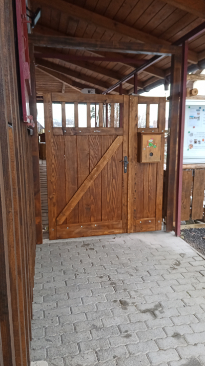 Beim Haupteingang wurde das neue Tor montiert. Der Zugang beim Arealgarten wurde provisorisch geschlossen. Grund dafür ist, dass das Holz, mit welchem wir die Tore gebaut haben noch relativ nass war/ist. Dieser Umstand hat den Bau der Tore nicht einfacher gemacht, da sich das Holz noch relativ stark bewegt. Dennoch haben wir uns dazu entschlossen das Tor zumindest beim Haupteingang zu montieren.