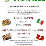 Nun ist es dieses Jahr am 21. Juni 2025 wieder soweit, dass wir mit Pipi e Patati alla Calabrese und OLMA-Bratwurst vom Grill verwöhnt werden.